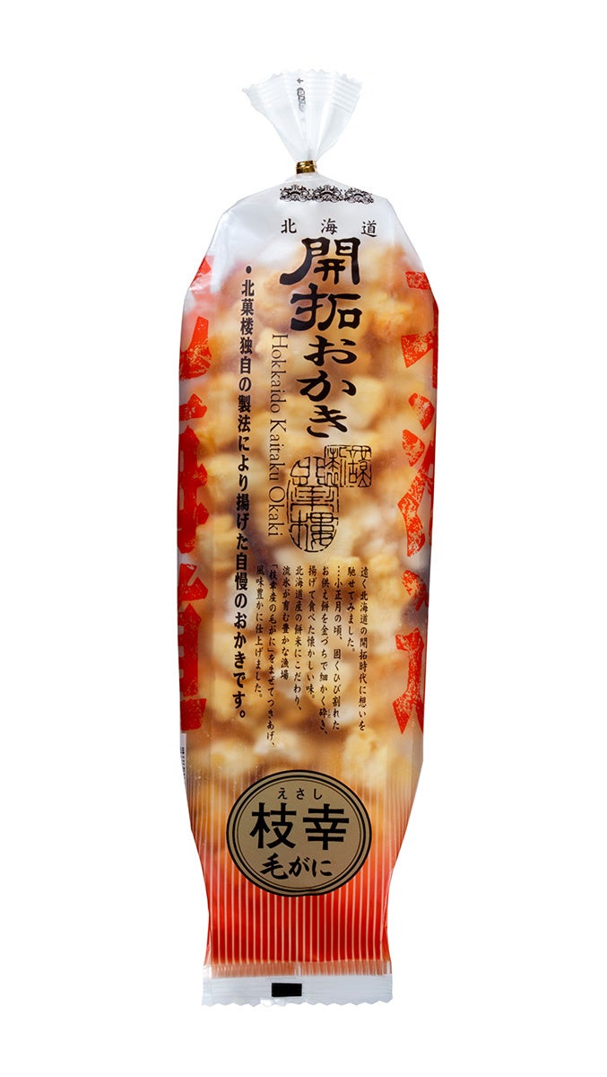 ■期間限定の味が販売再開「北海道開拓おかき 枝幸毛がに」・「北海道開拓おかき 野付北海シマエビ」