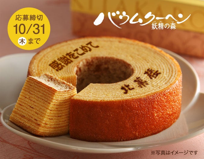 また、北菓楼の公式メルマガ会員様・LINE会員様を対象とした「プレゼントキャンペーン」も開催しております。抽選で30名様に「バウムクーヘン妖精の森 焼印入り(ホール・高さ4cmのタイプ)」1箱をプレゼントいたします。ぜひご応募くださいませ。