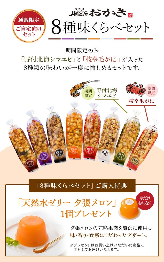 ■通販限定「北海道開拓おかき 8種味くらべセット」