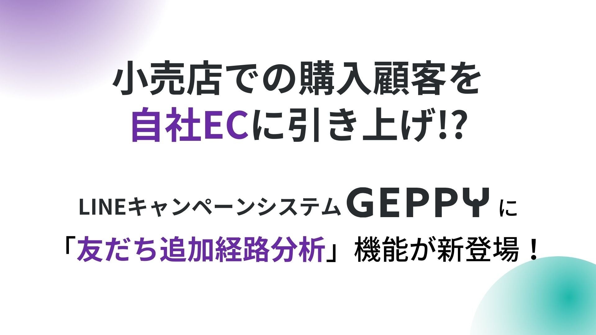 マインドフリー株式会社の提供する、LINEレシートキャンペーンシステムGEPPY(https://mindfree.jp/geppy/)は、新規顧客が企業のLINE公式アカウントの友だち追加の際に、どのチャネルから流入したのかを分析する「友だち追加経路分析」機能を新たに搭載したことをお知らせいたします。この機能の活用で店舗での購入客の自社ECでの囲い込みが可能となります。