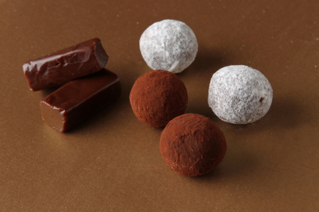 トリュフはプレーンとラムの2種類。プレーンはフランス産最高級ショコラを贅沢に使用、