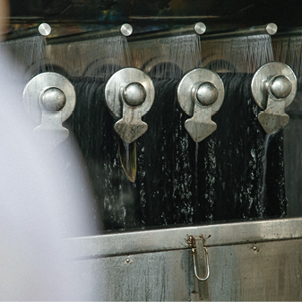 岐阜県の染色工場で、国内でも限られた現場で受け継がれているピグメントによる製品染めを施したカットソー。顔料(ピグメント)を繊維の表面に定着させることで、独特のムラや擦れ感が生まれ、長年着込んだような風合いに仕上がります。ブラック、ブルー、サンドベージュに加え、ホワイトにも顔料を重ねることで、ドライな質感を表現。顔料の層により透けにくくなるのも特徴です。