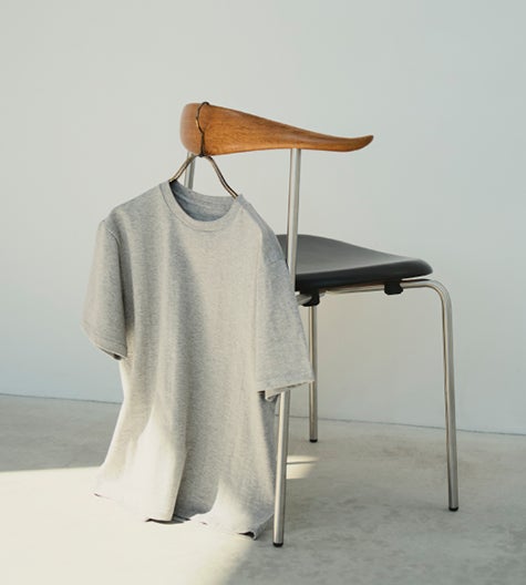 和歌山の吊り編み生地で、新たにショートスリーブを仕立てました。生地はロングスリーブとは異なる細番手の薄手素材。極上のやわらかさと美しい落ち感が特徴です。シンプルなデザインと繊細な縫製により、素材の良さを存分に引き出した一枚です。カラーはホワイト、ブラック、メランジグレーの3色。メランジグレーは杢糸ならではの奥行きある色味が魅力です。