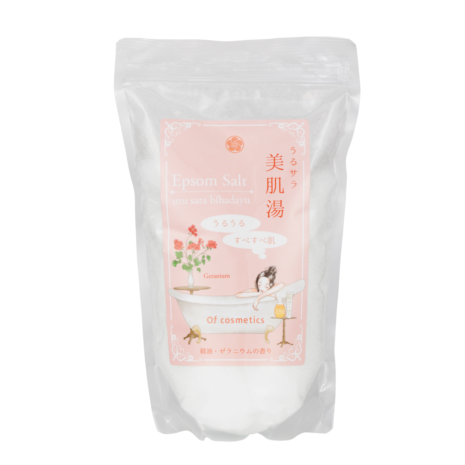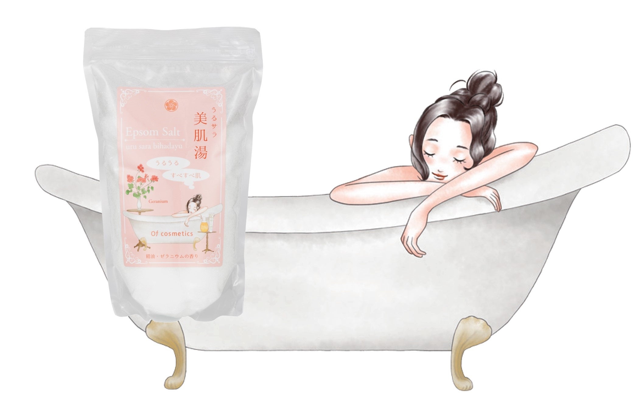 ゼラニウム精油の豊潤な香り漂うエプソムソルトで全身リラックスタイム