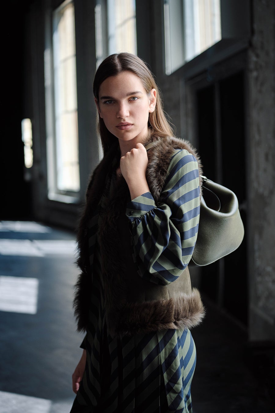アクリスがホーボーバッグを発表した2023年秋冬コレクションのインスピレーションは、女性が初めて能動的に服を選んだ時代でもある1970年代から。自己表現のためにファッションを謳歌する時代へのオマージュが込められた、レトロな雰囲気を纏うホーボーバッグが誕生しました。最高級の素材を使用し、控えめで洗練されたデザインは、タイムレスなコレクションピースとして長く愛用いただけます。