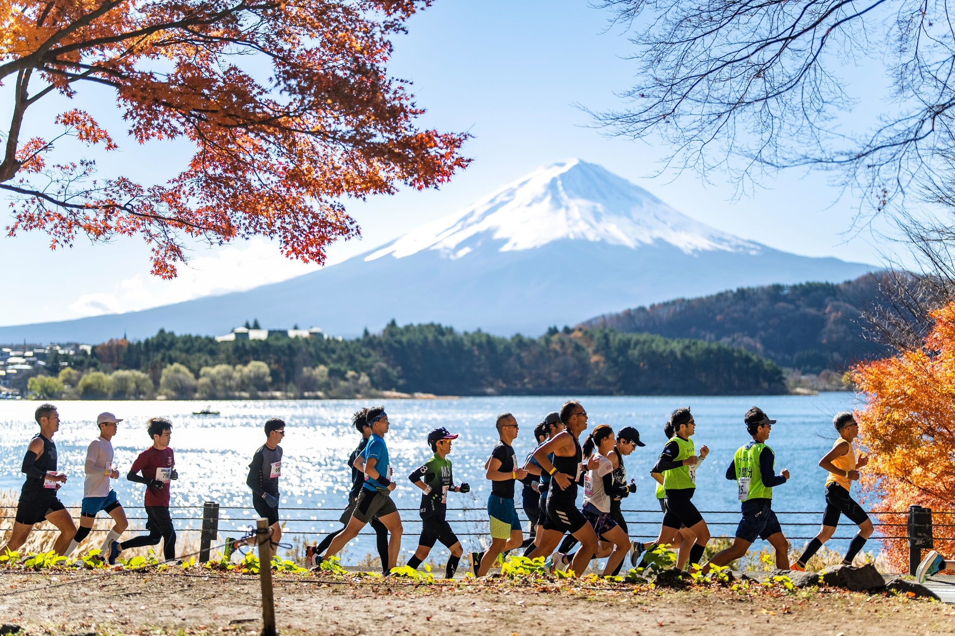 世界中から参加者が集まる国際色豊かなマラソン大会(既に8,700名以上がエントリー、うち約2,700名は海外ランナー)。山梨県富士河口湖町を舞台に、世界遺産富士山の絶景と紅葉を楽しむことができます。
