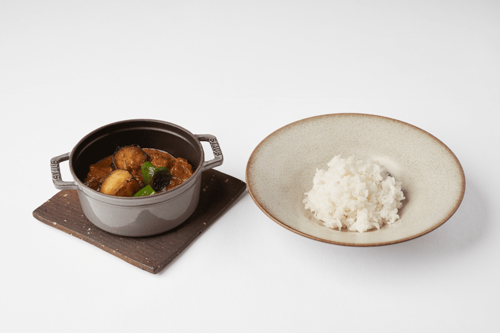茨城県の新しい銘柄豚「常陸の輝き」はさっぱりとした脂のキレが良く、おいしい豚肉です。茨城県は全国でも指折りの野菜の産地ですが、私が生まれ育った鹿行(ろっこう)地区で生産が盛んな「ピーマン」「さつまいも」など、豚肉の旨味と相性の良い野菜の滋味も楽しんでいただけるカレーです。