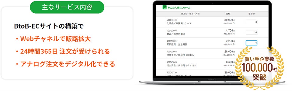 法人向けのBtoB-ECカートシステムです。FAXや電話での注文をWEBに切り替えて企業間取引の無駄を無くし、さらにECによる売上向上を実現します。