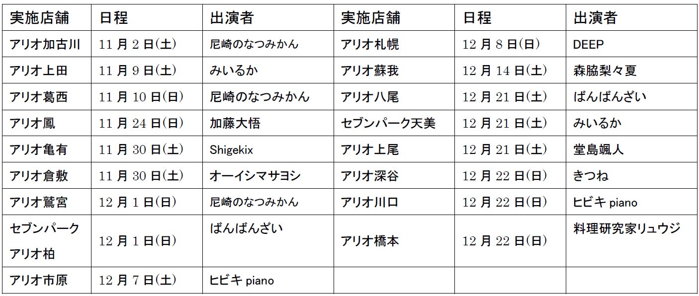 ※アリオ鷲宮は実施期間が11月16日(土)~24日(日)となります。