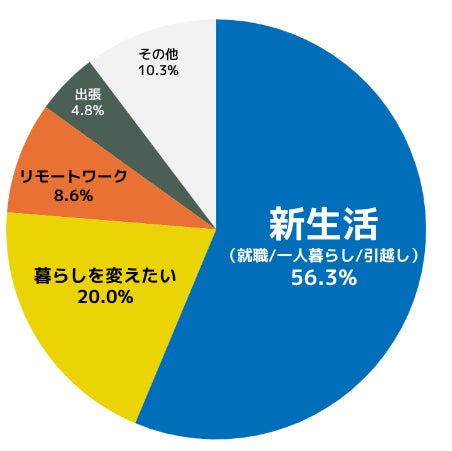 ホテル暮らしを始めたきっかけとして就職や引っ越しなどの新生活が始まるタイミングで、賃貸からホテル暮らしへ移行するユーザーが5割以上と最も多い結果となっていることから、まさに春から新生活を始める学生マンションの退去者に適した暮らし方と言える。