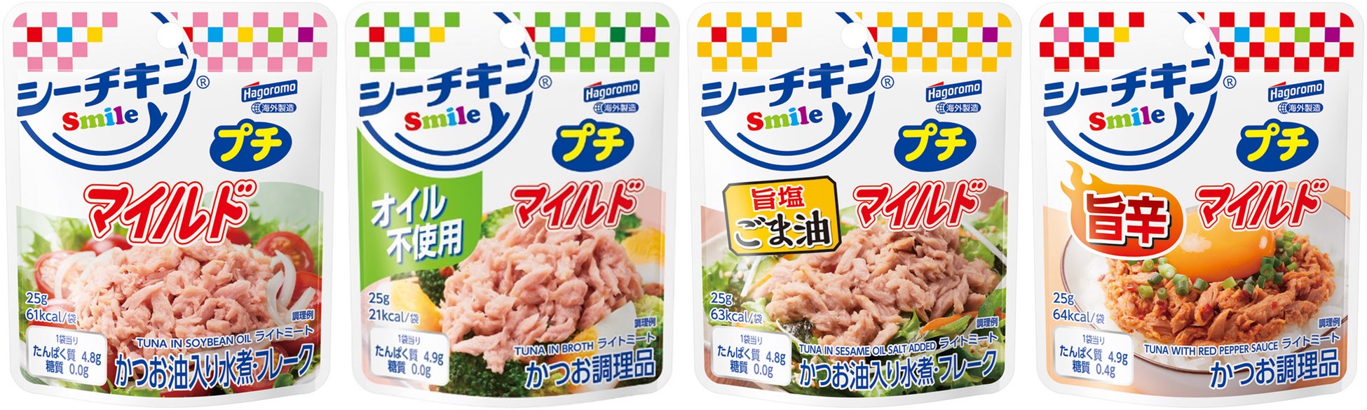 はごろもフーズ株式会社(本社:静岡県静岡市 社長:後藤佐恵子)は、内容量25gの袋タイプのシーチキン「シーチキンSmileプチ」4種を発売します。