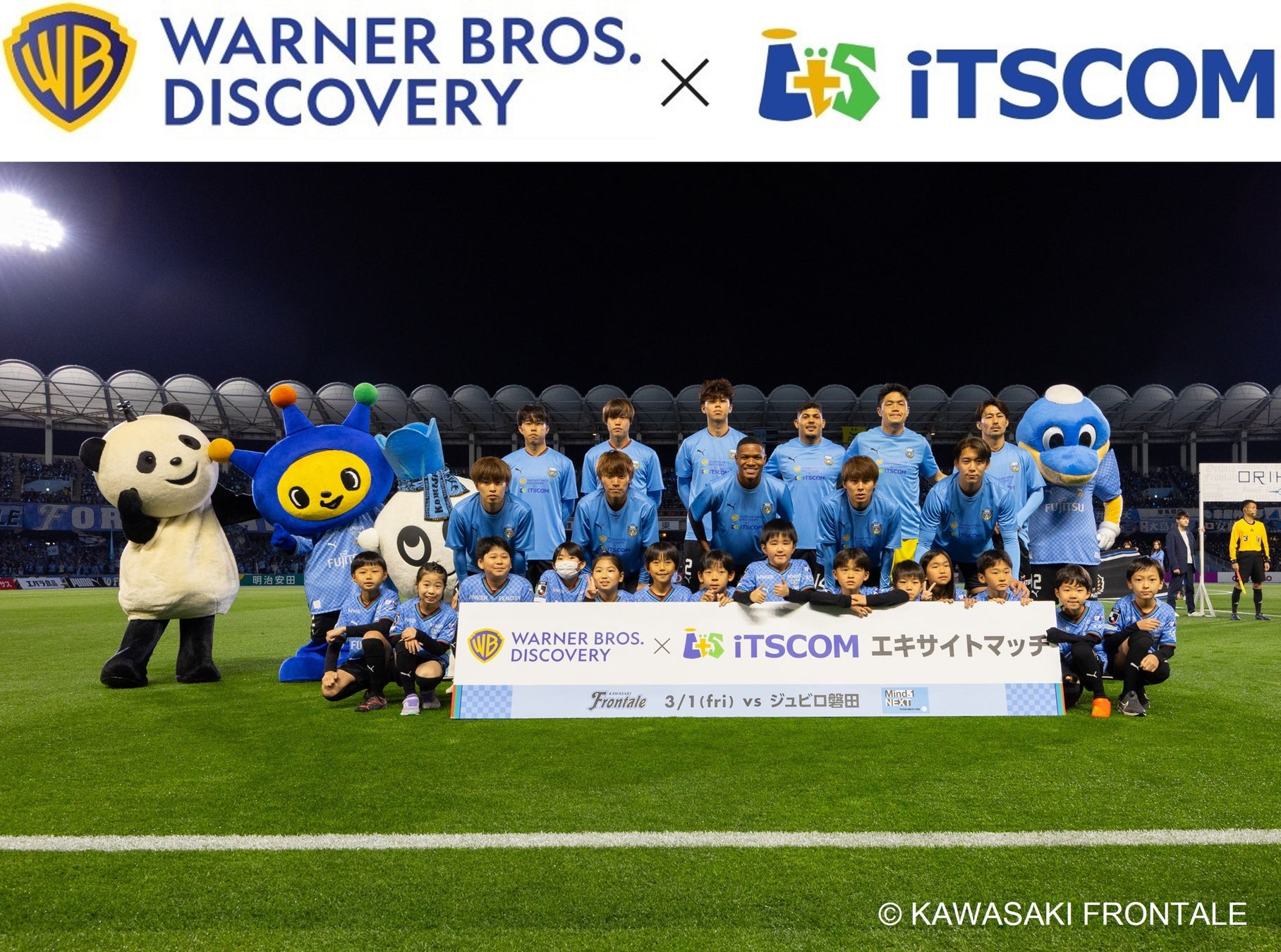 川崎フロンターレのオフィシャルパートナーであるイッツ・コミュニケーションズ株式会社(本社:東京都世田谷区代表取締役社長:金井美惠 以下、イッツコム)は、イッツコムテレビサービスで提供しているディスカバリーチャンネル(121ch)、アニマルプラネット(186ch)、ムービープラス(122ch)、女性チャンネル♪LaLaTV(123ch)等を運営するワーナーブラザース・ディスカバリーと連携し、3月1日(土)に開催されるホームゲーム(京都サンガF.C.戦)で「ワーナーブラザース・ディスカバリー×イッツコム エキサイトマッチ」として冠協賛いたします。