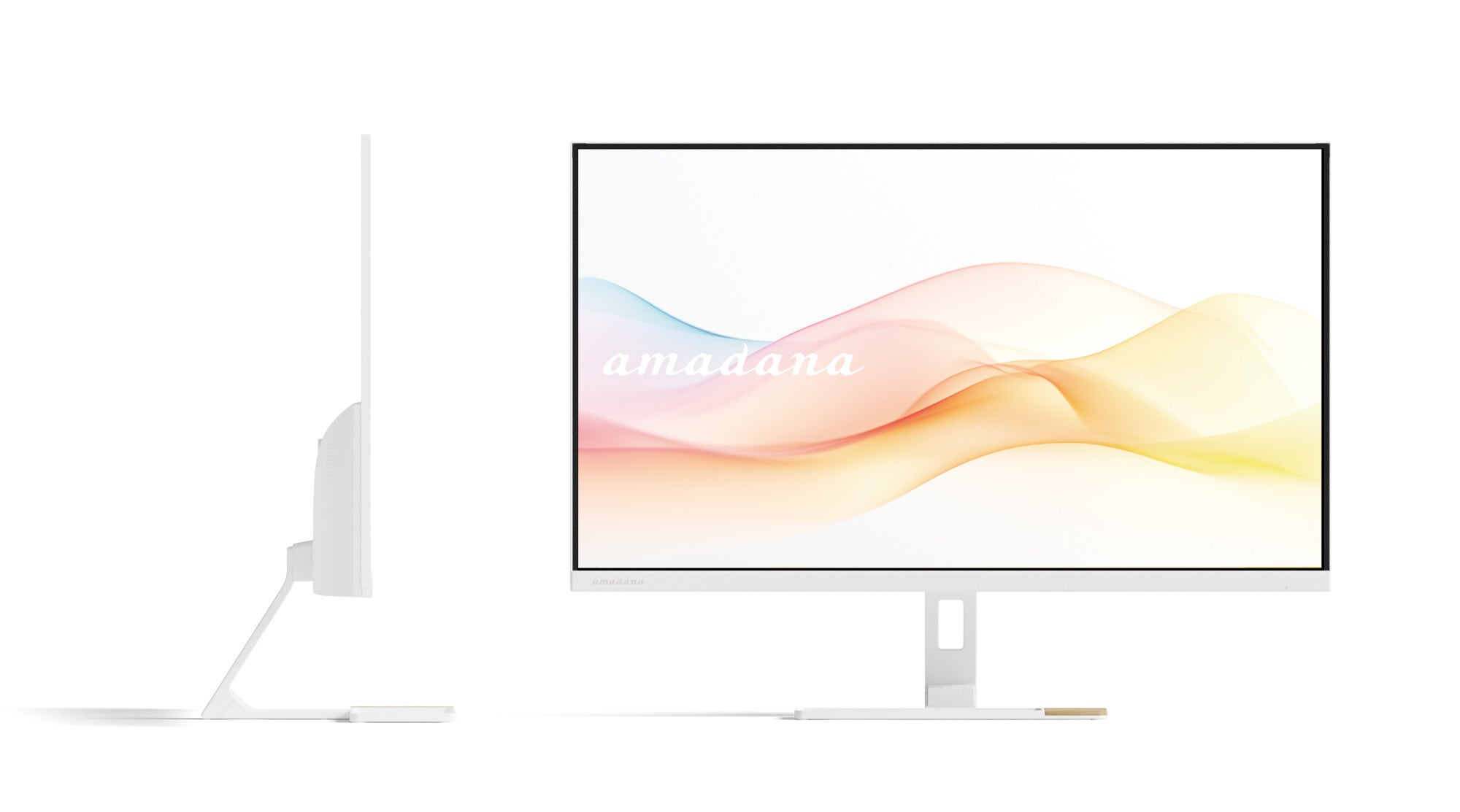 デザイン面では、最薄部約8mmのスリム設計と、画面周囲のフレームを極限まで薄くしたゼロフレームデザインを採用し、また、白を基調都市デザインはワークスペースやリビング、書斎にも自然に馴染む、amadanaらしい洗練された佇まいに仕上げました。