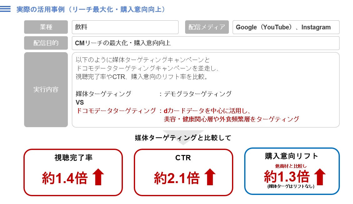 D2C Rのドコモデータ第三者提供の活用事例をご紹介いたします。