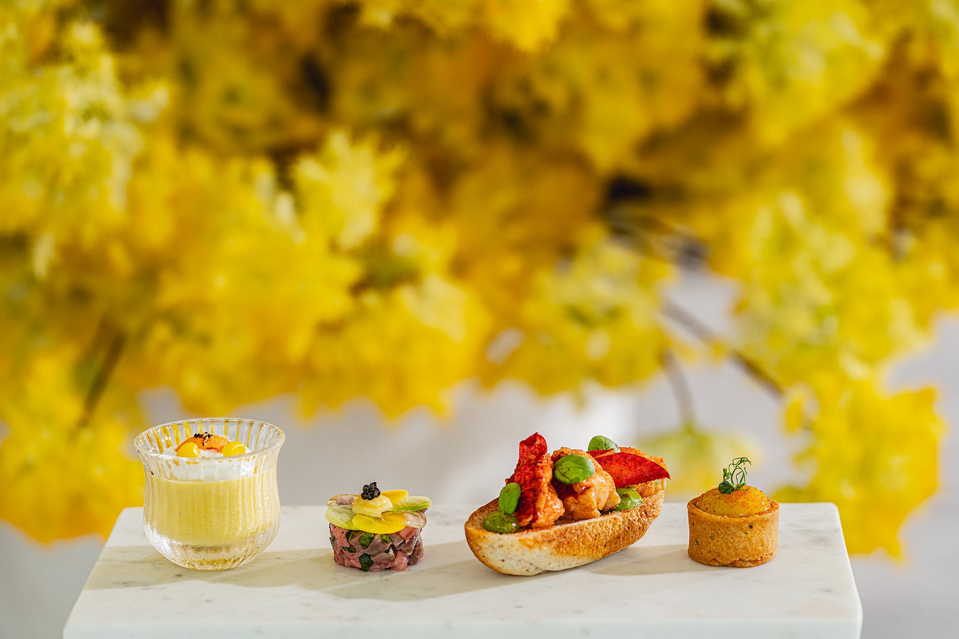ザ ジャクソン ガーデンでは、パティスリーパブロフのパティシエ近藤が監修した、夏の食材をふんだんに使用したアフタヌーンティーをご提供いたします。旬の夏の味覚を贅沢に詰め込んだアフタヌーンティーBOXが登場。スイーツには、芳醇なマンゴーケーキ、爽やかな桃のコンポートとミントジュレ、スパイス香るバナナ入りパイナップルタルトなど、夏の果実が満載です。人気のパンナコッタは、グレープフルーツジュレとシャインマスカットの爽やかな組み合わせで仕上げました。セイボリーの主役は、フランス産発酵バター「エシレ」で香ばしくソテーしたオマール海老のオープンサンド。コク深いアメリケーヌソースとズッキーニソースが絡み合い、一口ごとに贅沢な味わいをお楽しみいただけます。さらに、大葉と牛肉のタルタル、パプリカムースのタルト、冷製とうもろこしのポタージュなど、夏らしい食材を可愛らしく仕立てたセイボリーが華を添えます。暑い夏の日常を忘れ、ザ ジャクソン ガーデンで涼やかな夏のひとときをお過ごしください。