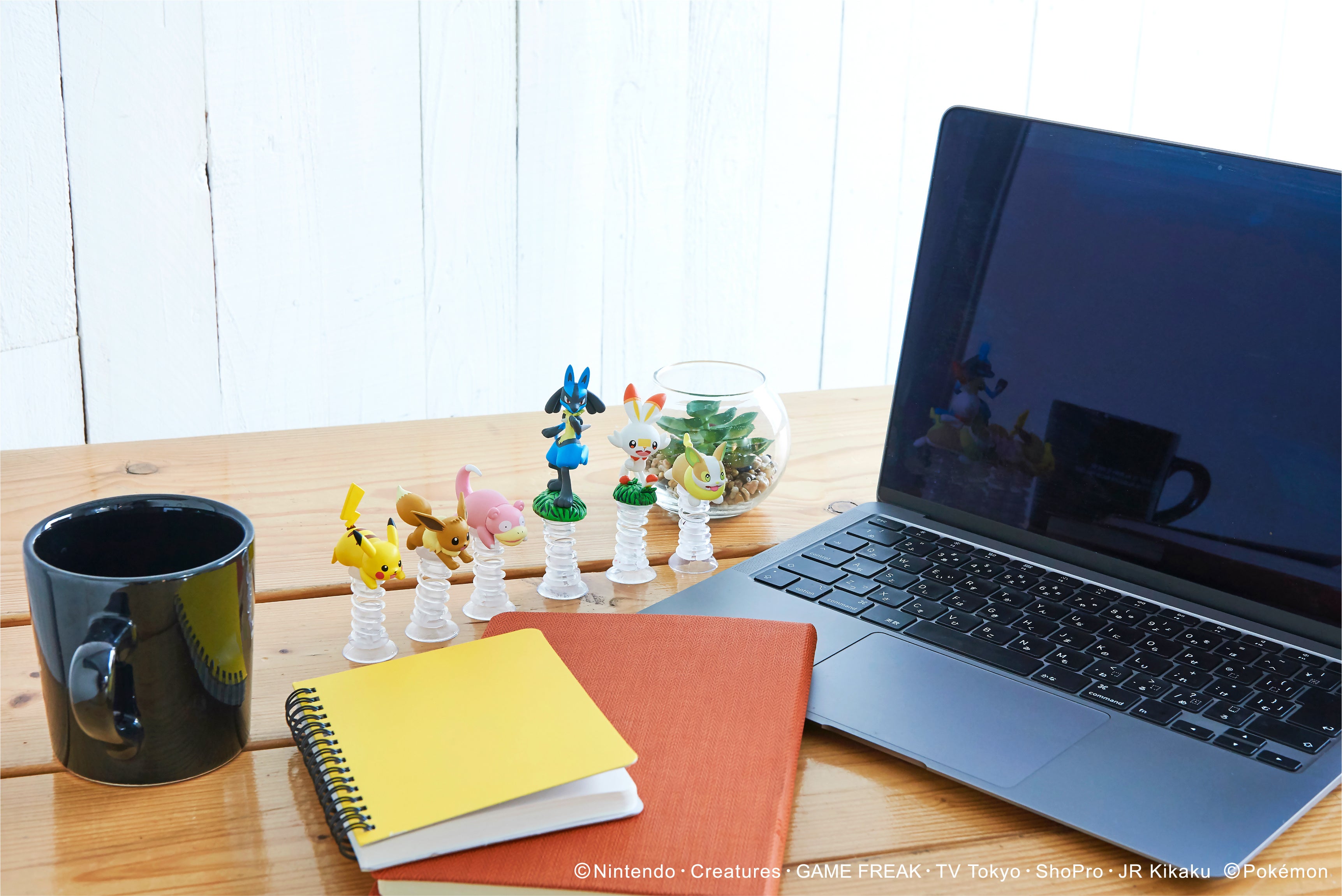 ポケモンが鉛筆の上、デスクの上で元気にビョンビョン動く!