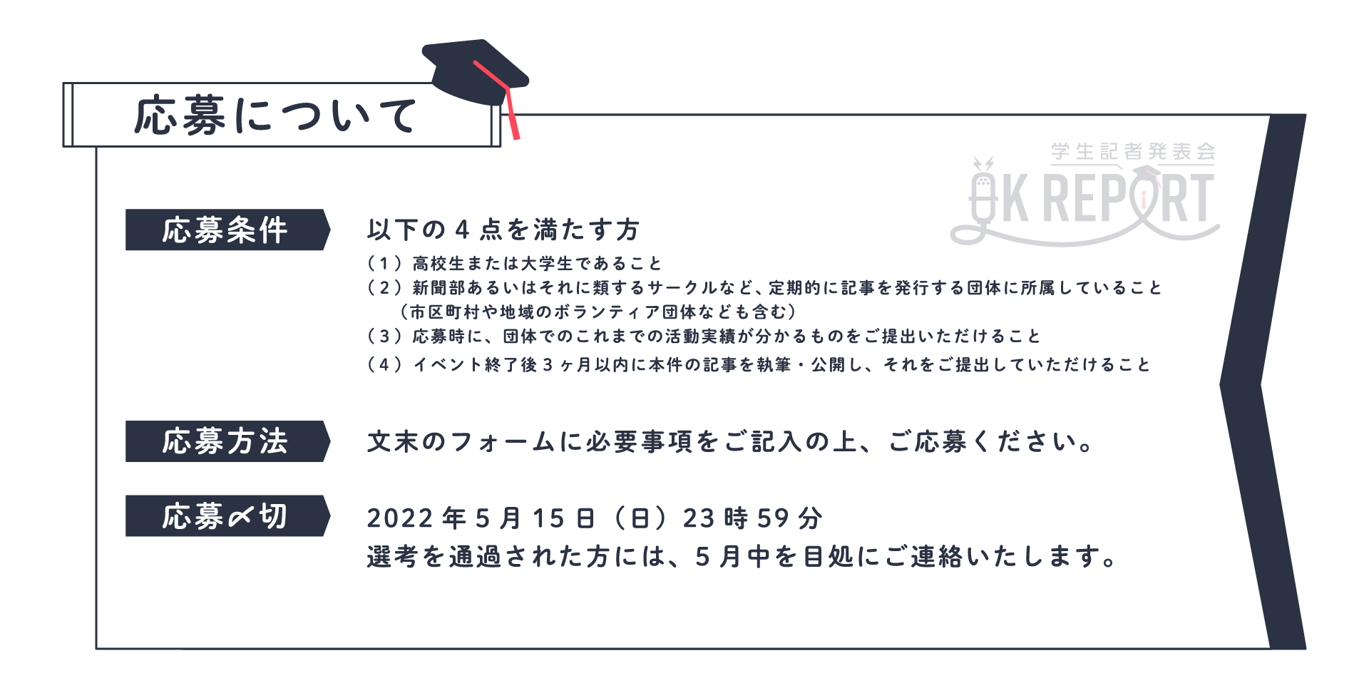 ・応募方法:こちらのフォーム(https://forms.gle/LhHvrHi2UBwkL7CG7 )に必要事項をご記入の上、