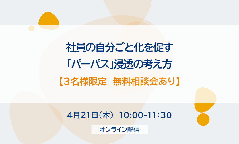 【3名様限定 無料相談会あり】「社員の自分ごと化を促す『パーパス』浸透の考え方」ウェビナーを4/21(木)開催