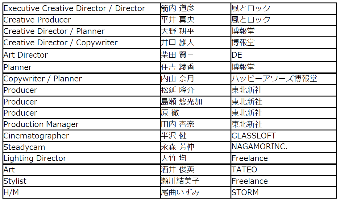 制作スタッフ:風とロック/株式会社博報堂/東北新社