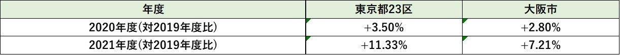 とくに、2021年は大阪市と比較して東京都23区の高騰率は著しく、1年で1割以上の高騰。価格上昇ペースが非常に早まっています。