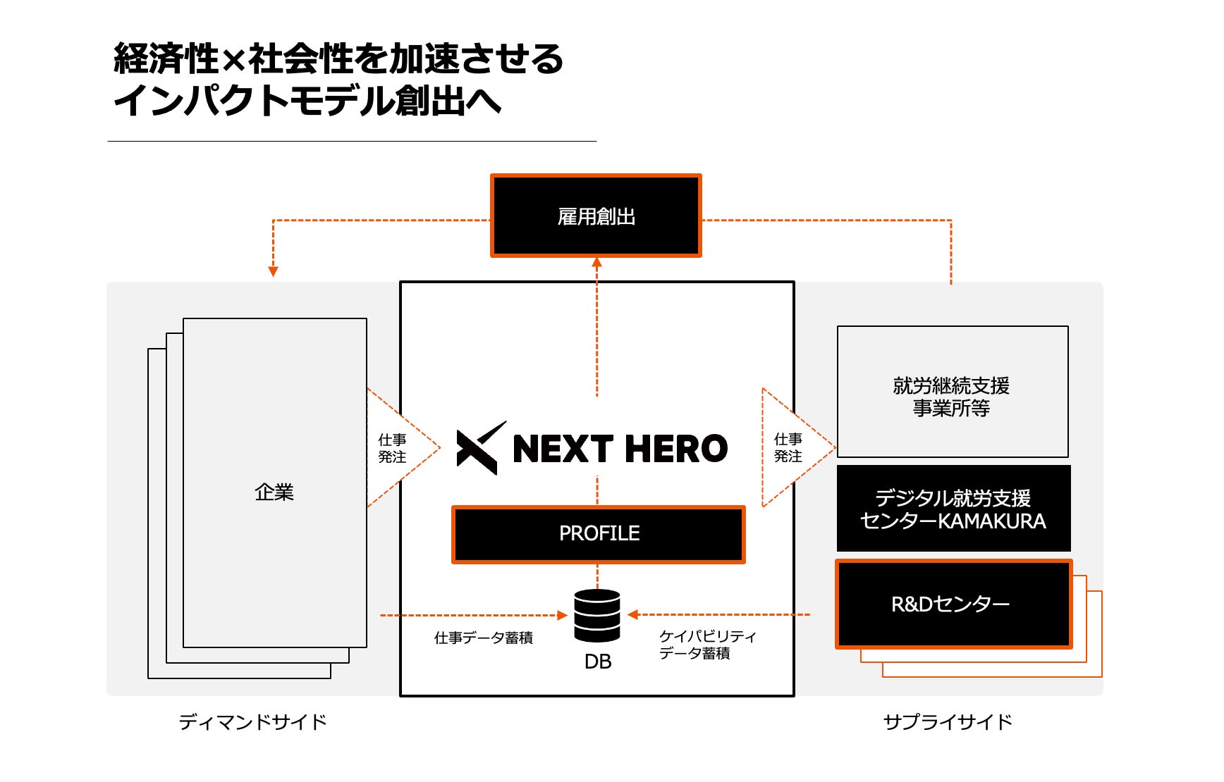 「仕事を通じて、自分の存在価値を強く実感し続けられる社会をつくる」ことをミッションに掲げ、潜在的な労働人材(障がいのある方々等)が、ビジネスの市場で大活躍できる仕組みを、プラットフォームを通じて実現させるスタートアップ企業。創業から9年間、全国47都道府県、総勢12,000名を超える働く意志を持つ障がい者をネットワークしながら、民間企業の外注業務を積極的に受注し、累計約400種類、1,500案件を超える業務を、障がいのある方々へ再委託・マッチングを展開しています。(障害のある方に“新たな仕事の流通“をつくる「就労困難者特化型BPOプラットフォーム事業(NEXT HERO)」)。を運営