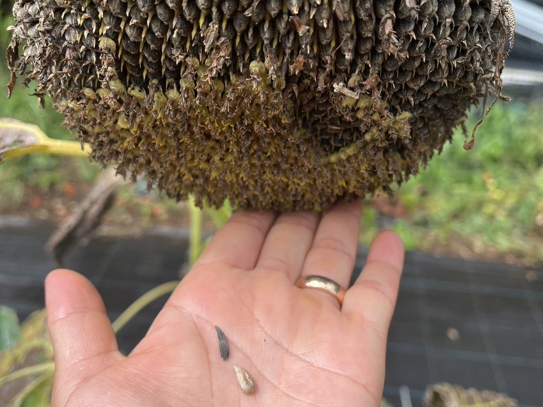 農園では、たくさんのひまわりが元気に花を咲かせ、ご利用者様はもちろん、近隣の方にもお楽しみいただくことができました。農園にやってくる野生動物にひまわりの種を狙われる一幕もありましたが、農園スタッフ一同、無事に収穫できたことにほっと胸をなでおろしています。ご利用者様にも種の収穫にご協力いただき、農園に関わる皆様と楽しみながらプロジェクトに参加させていただきました。