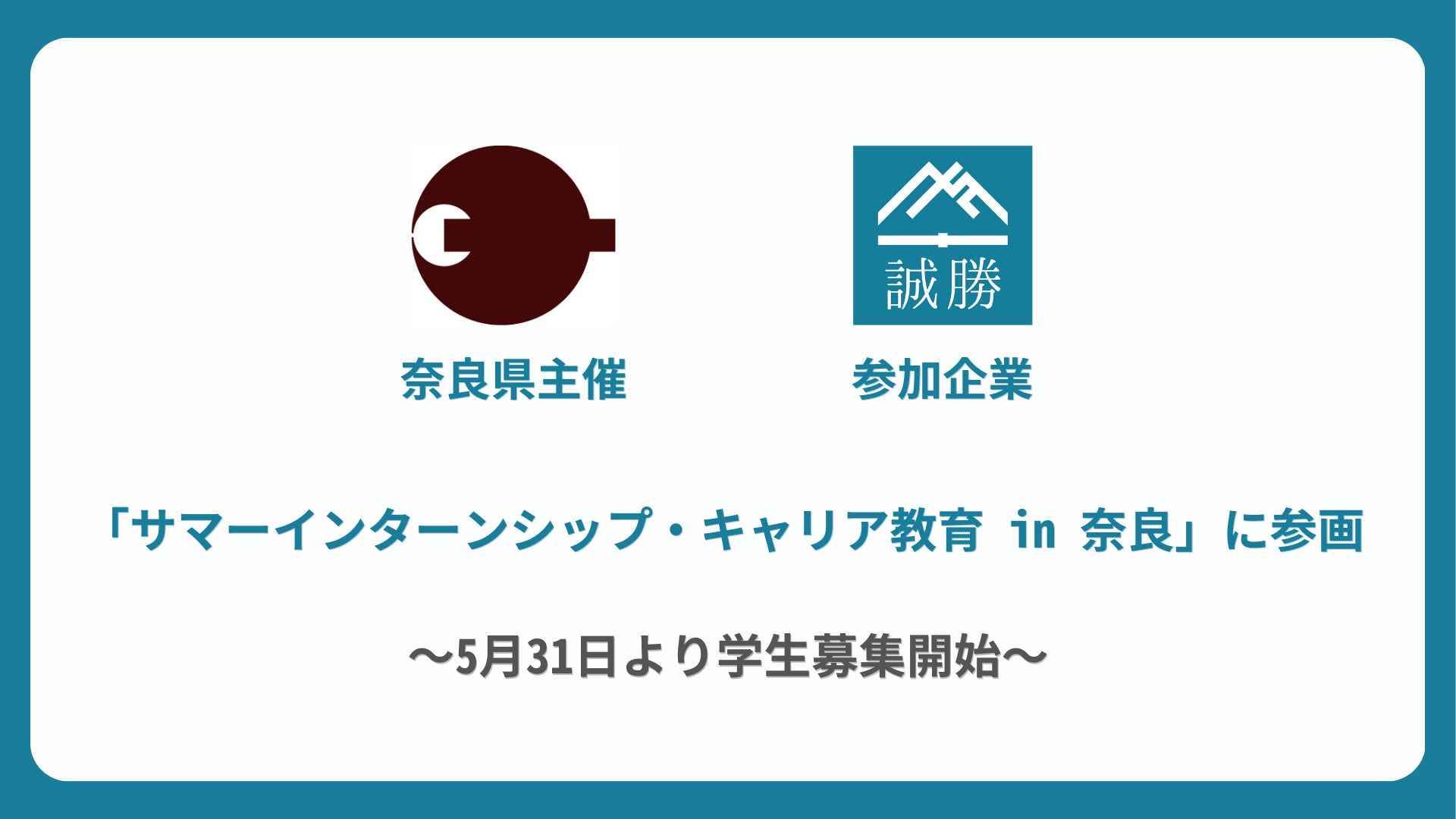 デジタルアーカイブの構築と利活用教育を手がける株式会社誠勝(本社:東京都新宿区、代表取締役社長:山本大視 以下誠勝)は、奈良県が主催する「サマーインターンシップ・キャリア教育 in 奈良」に実施企業として参画します。これにともない本日5月31日より、奈良支店において2024度以降に卒業予定の大学生・大学院生・高等専門学校生・短期大学生のインターンを募集します。