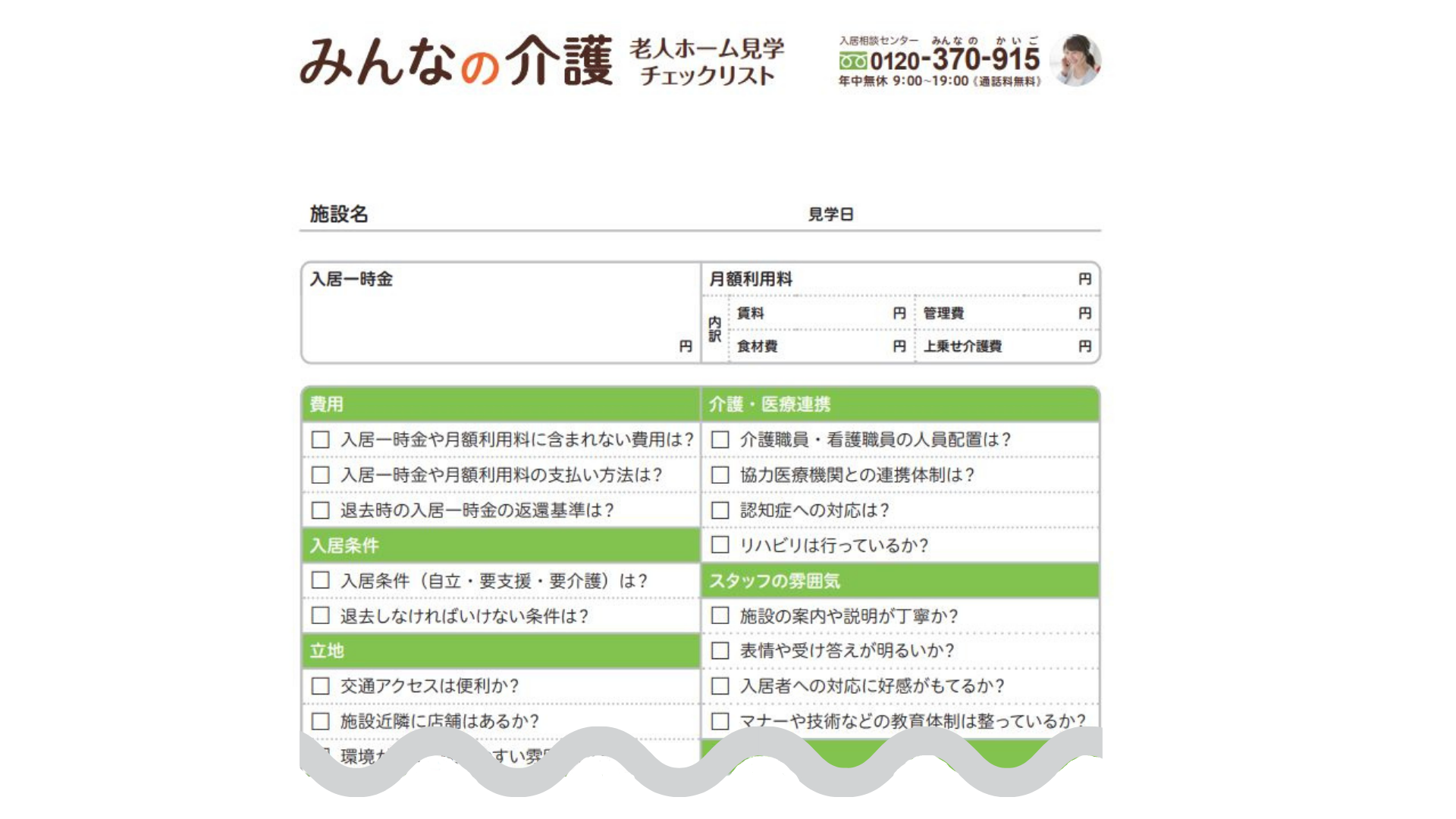 ダウンロードはこちら https://www.minnanokaigo.com/docs/checklist.pdf