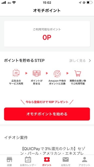 前身のアプリ「AI-Credit」から引き継いだ、ポイントを効率良く獲得する情報を配信し、いつ・どこで・どんな支払い方法を選べばお得か、ポイント還元率を最大化する方法を瞬時に教えてくれる機能や、お得情報を逃さない「お得カレンダー」機能はそのままに、リニューアルした「オモチ」では、アプリ内の広告を利用するとポイントが貯まる仕組みもスタートしました。