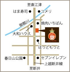 上越市は新潟県で第3位の市場人口を擁する(18.6万人令和4年5月時点)日本三大夜桜の一つと称される高田城址公園が有名な街である。上越春日野店は上越市の中心部と内陸部の妙高市を結ぶ新潟県道63号(上越新井線)に面していて、沿線には飲食店や小売店がそろっています。