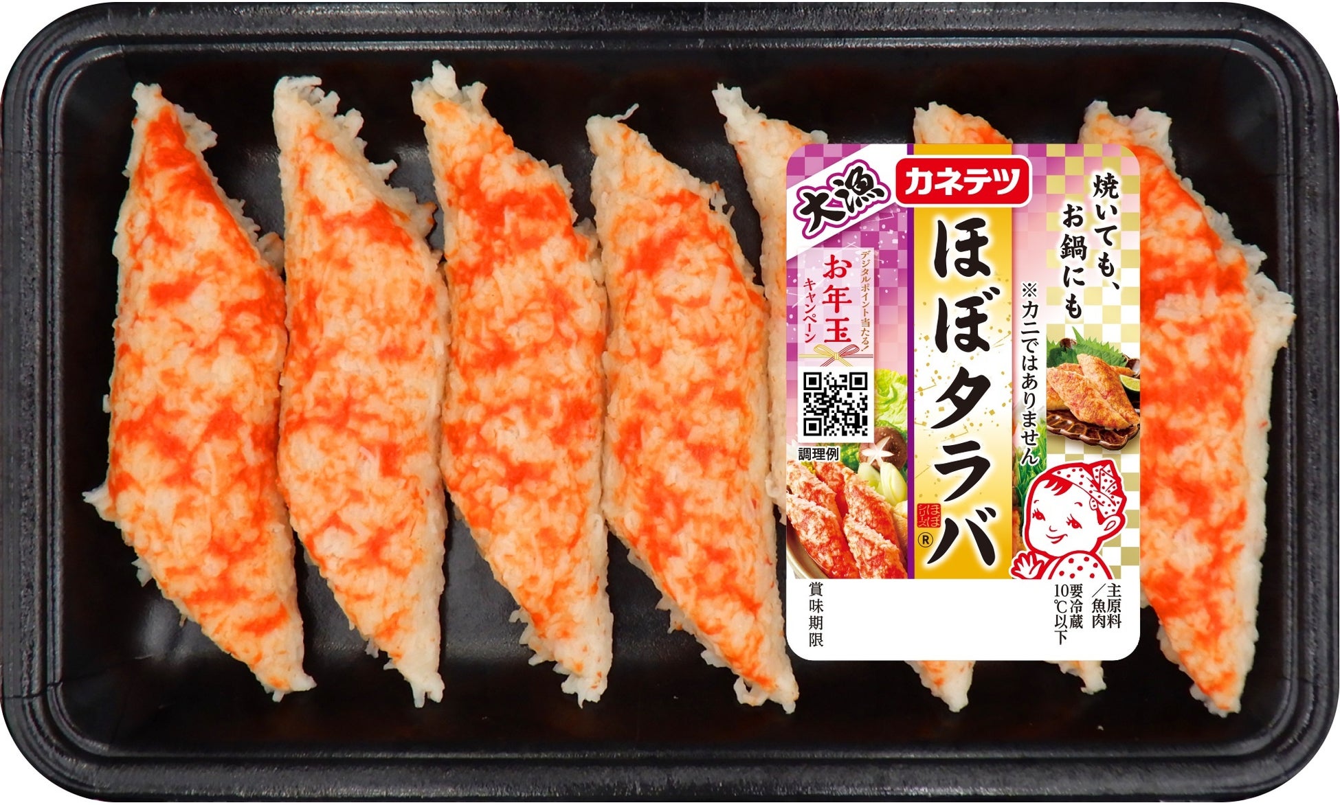 タラバガニの太く弾力のある繊維感と、食べた時にホロホロとほぐれる食感を再現した本格カニかまです。“大漁”の名の通り、1パックあたりの重量は通常品「期間限定 ほぼタラバ®」の約2倍。お鍋や、さっと焼いて焼きガニ風にお召し上がりいただくのがおススメです。