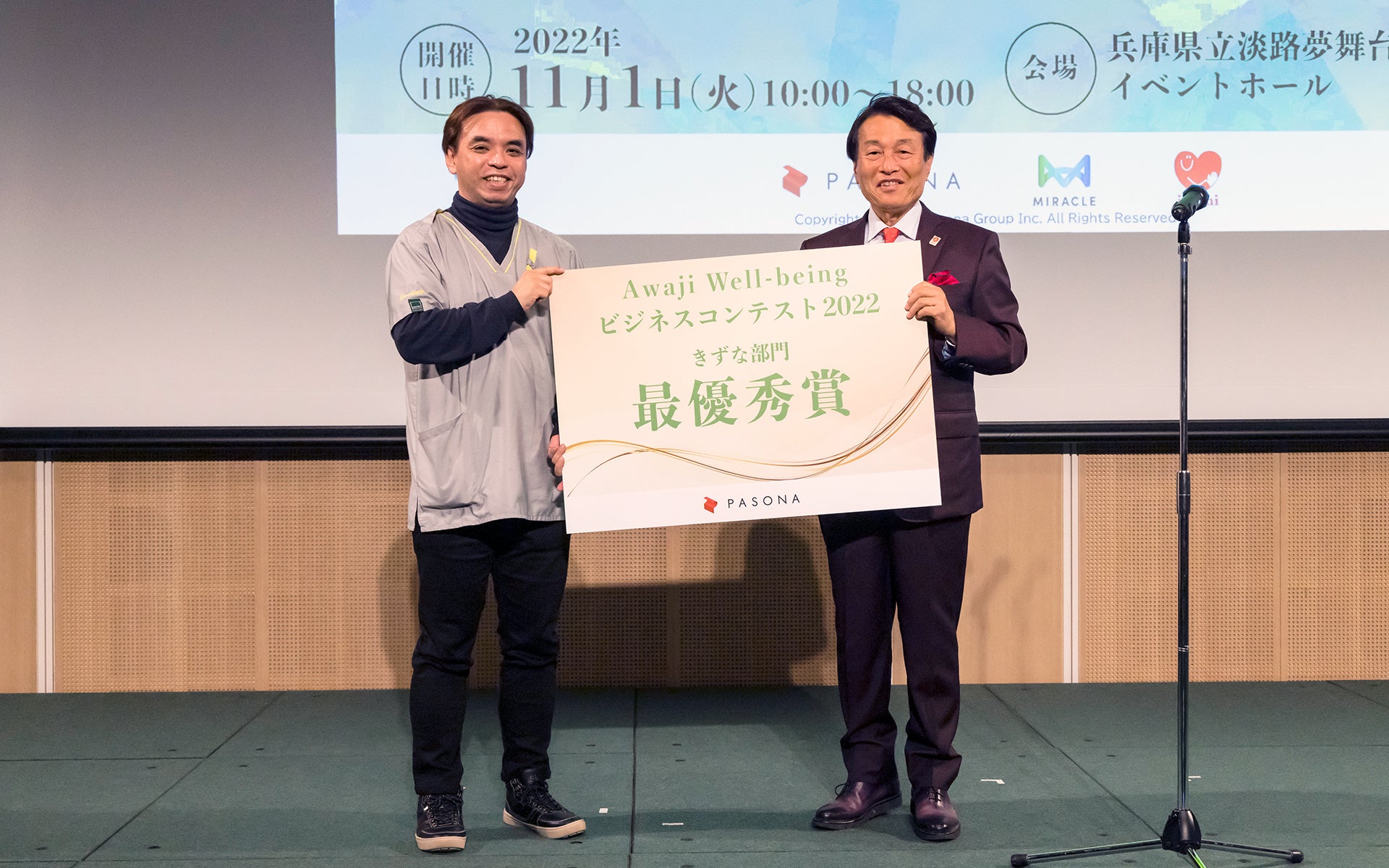 このたび、弊社は、2022年11月1日に行われた、株式会社パソナグループが主催する“Well-being”をテーマにした新産業創出を目的にしたイベント『Awaji Well-beingビジネスコンテスト2022』の「きずな部門」(働く・互助・コミュニティなどをテーマにした事業)において、「専門医の耳と知見を持ったAI聴診器の開発」とした発表を弊社代表の峯が行い『最優秀賞』を受賞いたしました。