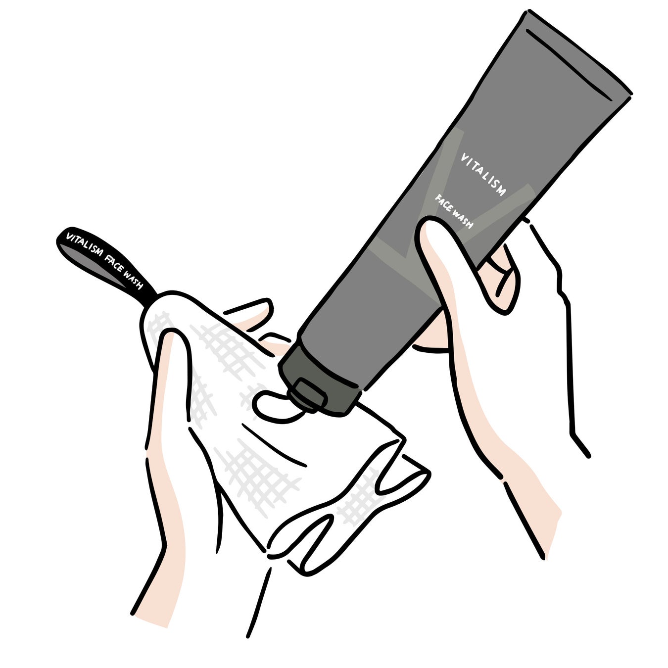 洗顔料は一度手にとったりせず、直接泡立てネットにつけましょう。