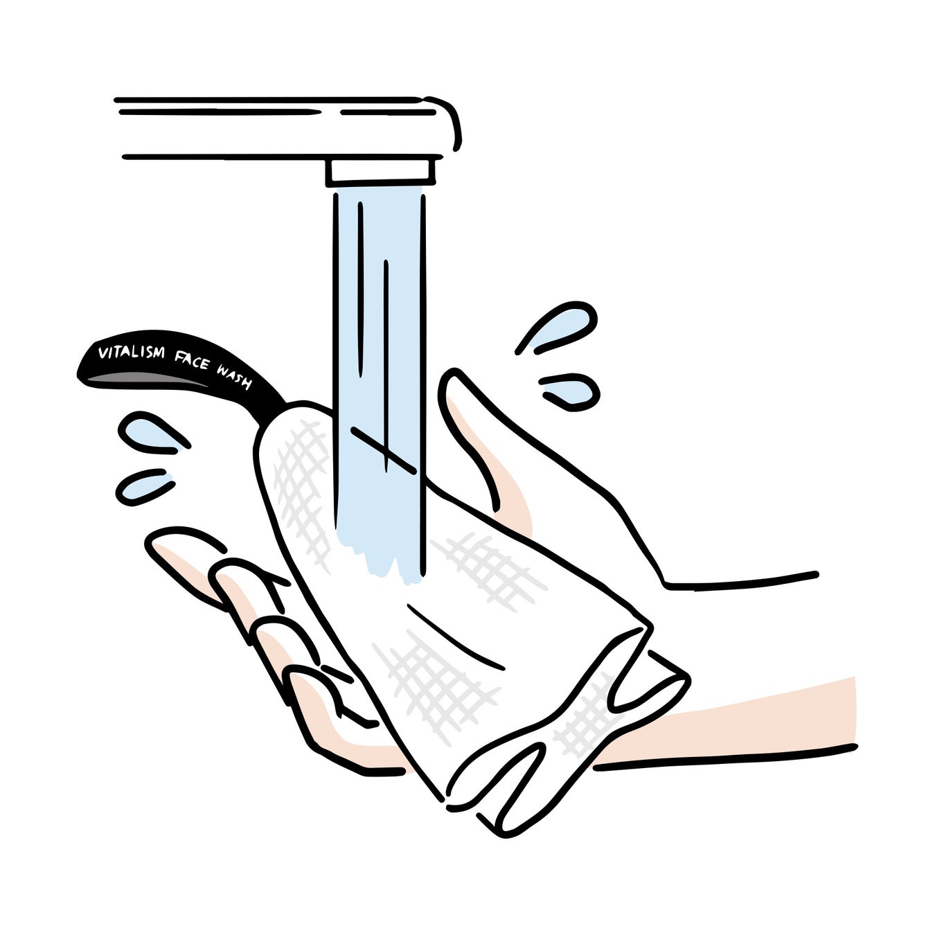 泡立てネット全体を濡らしたら、水分をしっかり切ります。泡立てネットに残っている水分が多すぎると、洗顔料が上手く泡立ちません。
