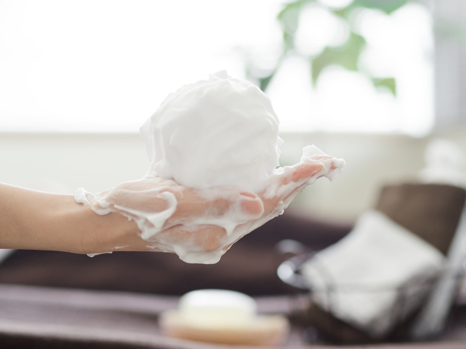 洗顔はスキンケアの最初のステップ。だから、「どうやって洗顔するか」がとても重要です。ポイントは「泡」。空気をたっぷり含んだふわふわの濃密泡は、肌についている汚れや不要な皮脂、古くなった角質をしっかり吸着します。洗顔料をしっかり泡立てて使うことは、洗顔の9割を決める重要なポイントなのです。