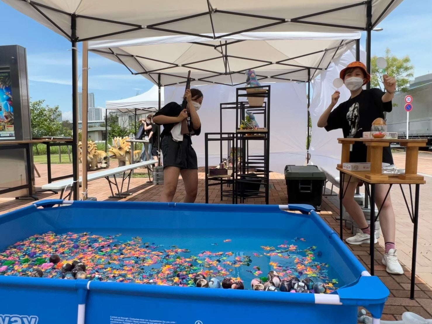 BBQ以外にも縁日として恐竜すくい、射的など、子供たちも大喜び!