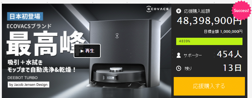 ロボットの研究開発、生産、販売を一体化した家庭用ロボットの総合メーカー・エコバックスジャパン株式会社(本社:東京都新宿区、代表取締役社長:坂梨文康)のMakuakeプロジェクトは、サポーター数510名を超え、応援購入総額は5,400万円を突破しました。