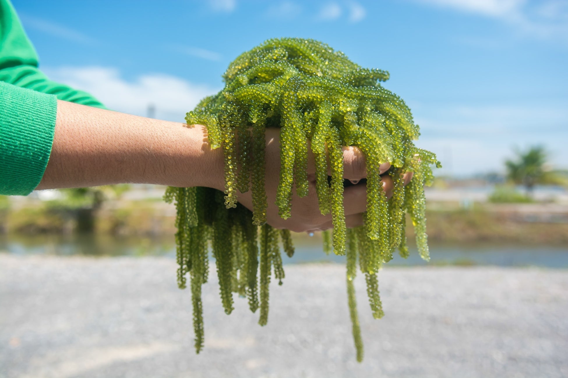 アクアポニックスでは、システム内で水を循環させるため、海水アクアポニックスでは、耐塩性の高い植物や海藻類を栽培する必要があります。本実証実験では、栄養価が高く、ヨーロッパやハワイ等で食べられている「シーアスパラガス」と、海水温の上昇や台風等の影響により、従来の海面養殖が難しくなっているとされる「海ブドウ」を栽培します。