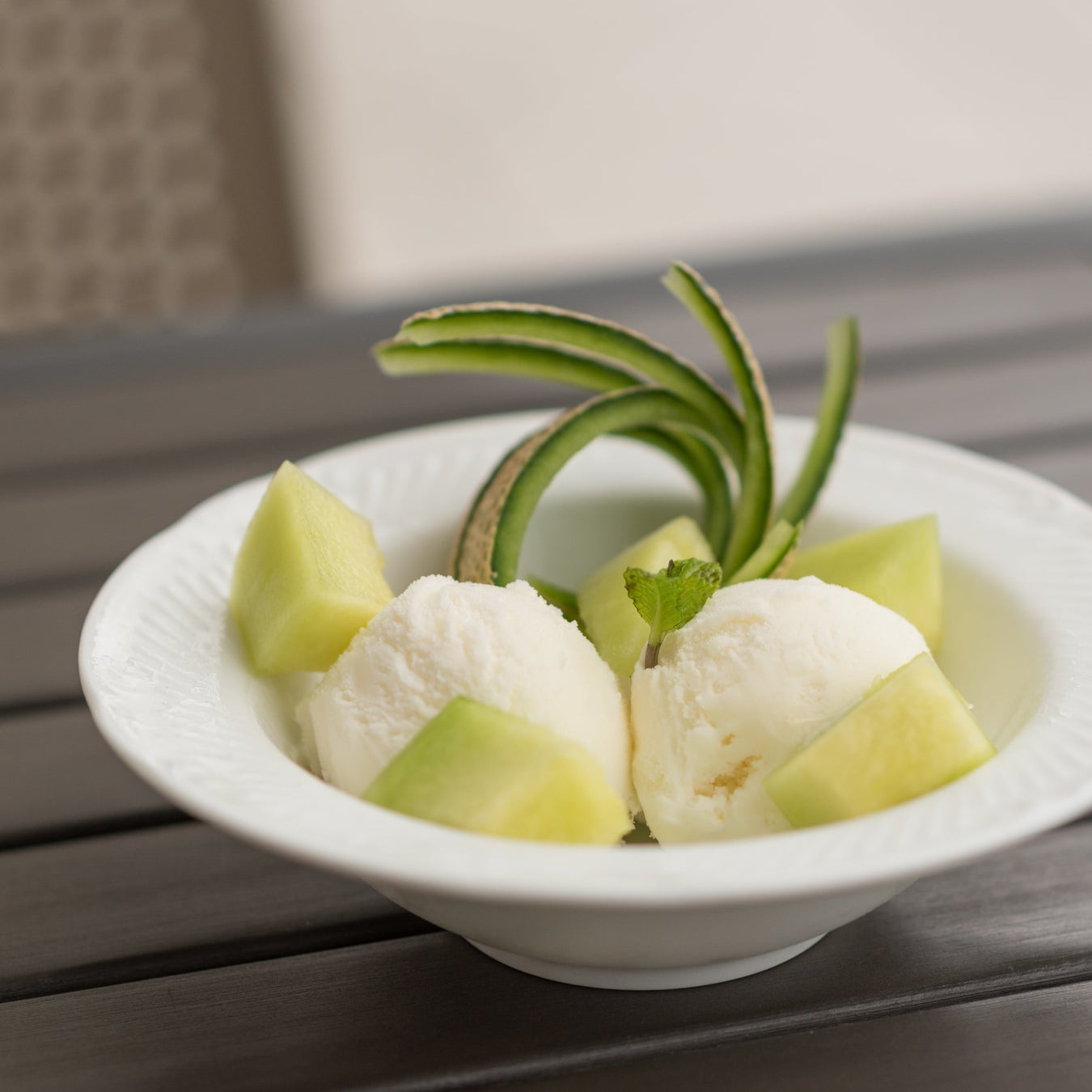 濃厚で瑞々しいほこたメロンに杏仁アイスが相性抜群。のど越しもさっぱりで、一度食べたらリピーター確実!