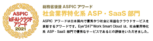 ■Eye“247” Work Smart Cloudは、総務省後援 ASPICアワードを受賞