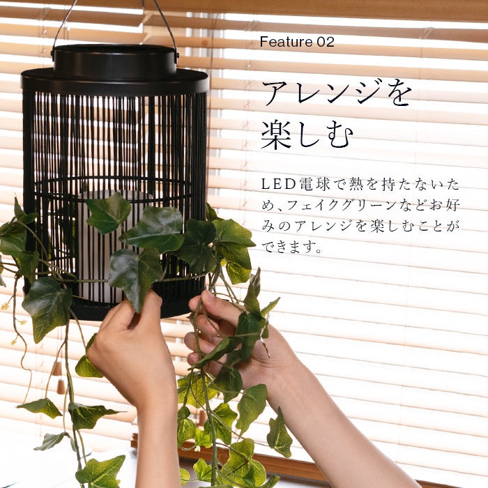 ライトはLEDで熱を持たないため、フェイクグリーンなどお好みのアレンジを楽しむことができます。キャンドル部分を取り外しすることもできるので、お気に入りのオブジェを入れることも可能です。