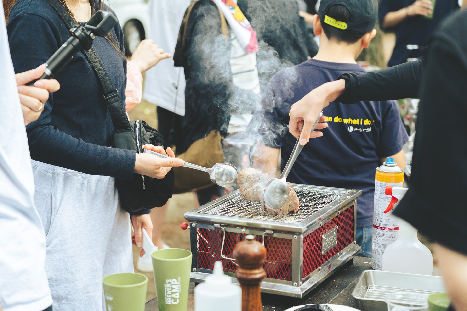 会場でシェフが腕を振るうレストランクオリティのBBQ料理はビュッフェ形式でご用意します。炭火でじっくりと焼き上げるお肉や旬の食材の数々はビールとの相性も抜群。数々のレストランを運営するTYSONS & COMPANYならではの贅沢なアウトドアグルメをご堪能ください。