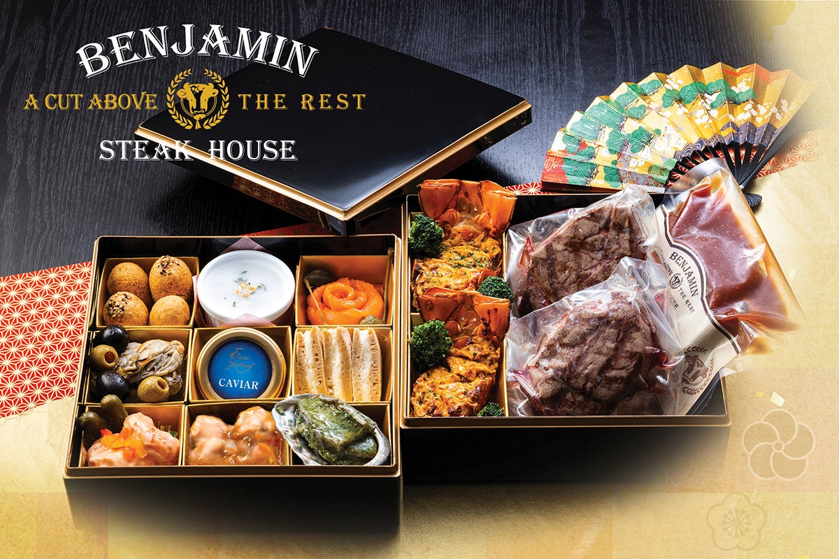 アメリカ、ニューヨークでリピーターを魅了し続ける「ベンジャミンステーキハウス(BENJAMIN STEAK HOUSE)」の日本3店舗(六本木・京都・東京紀尾井町)より、おせち料理を販売いたします。USDAプライムグレードのフィレステーキなど全12品をお楽しみいただける二段重おせちで新年に至福な時間をお過ごしください。