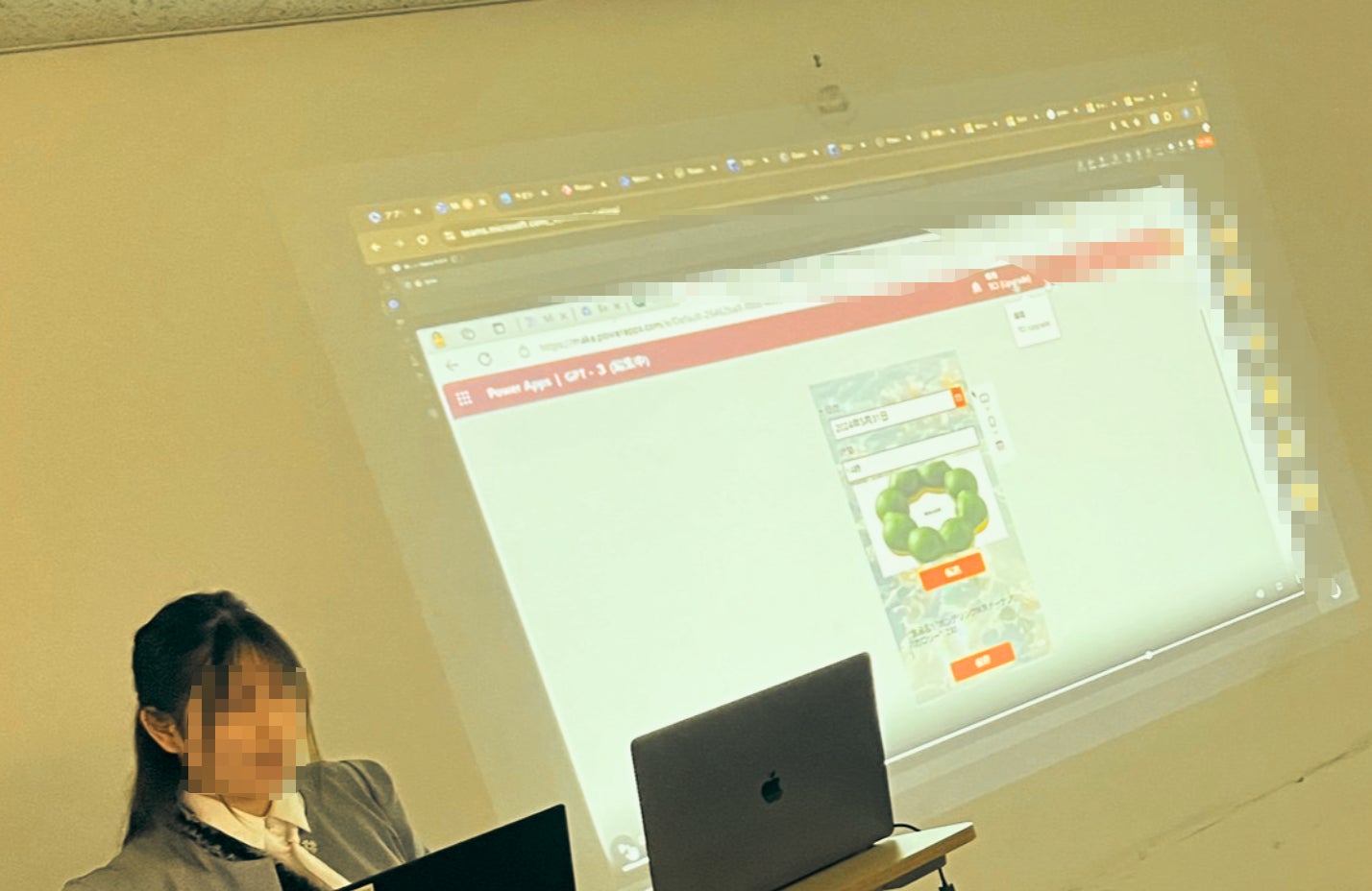 今回は新入社員が対象であったため、実際の業務をイメージしたアプリ開発を行う際のアイデアの組み立て辛さがありました。そこで受講者は、先輩社員からのヒアリングを通じて業務上の課題を抽出し、その解決策を実装しました。このプロセスで、受講者は問題解決力を養い、実践的なスキルを磨きました。