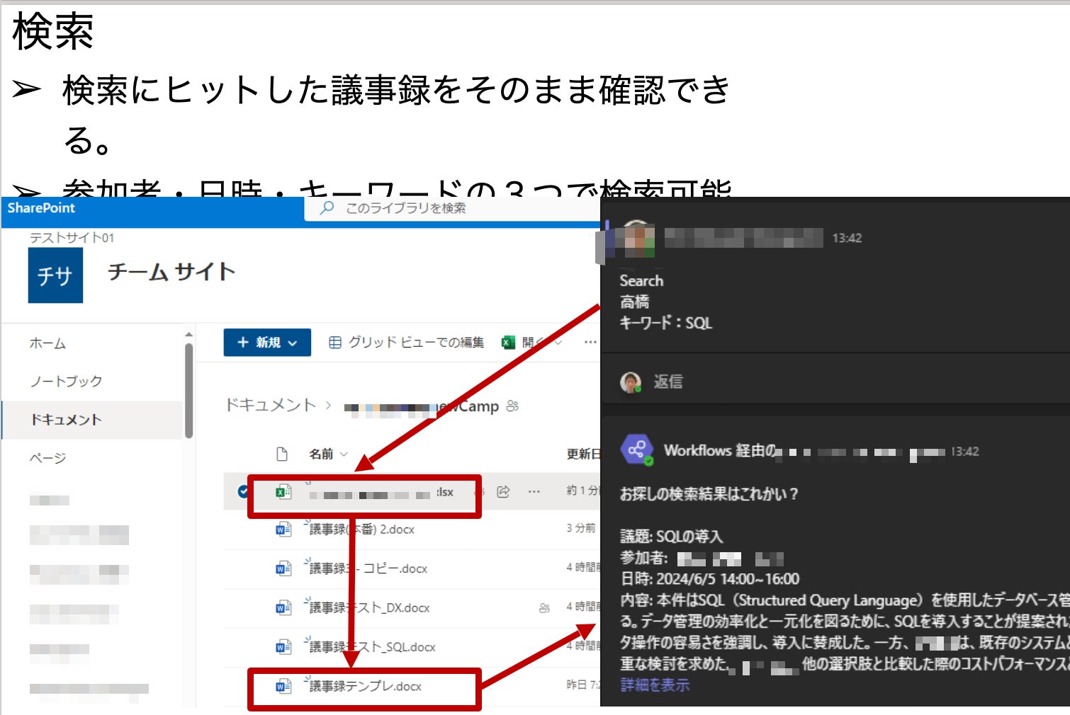 議事録が検索しにくく、過去の情報検索に時間が掛かっているという課題をTeamsから検索出来るようにする議事録管理BOT。