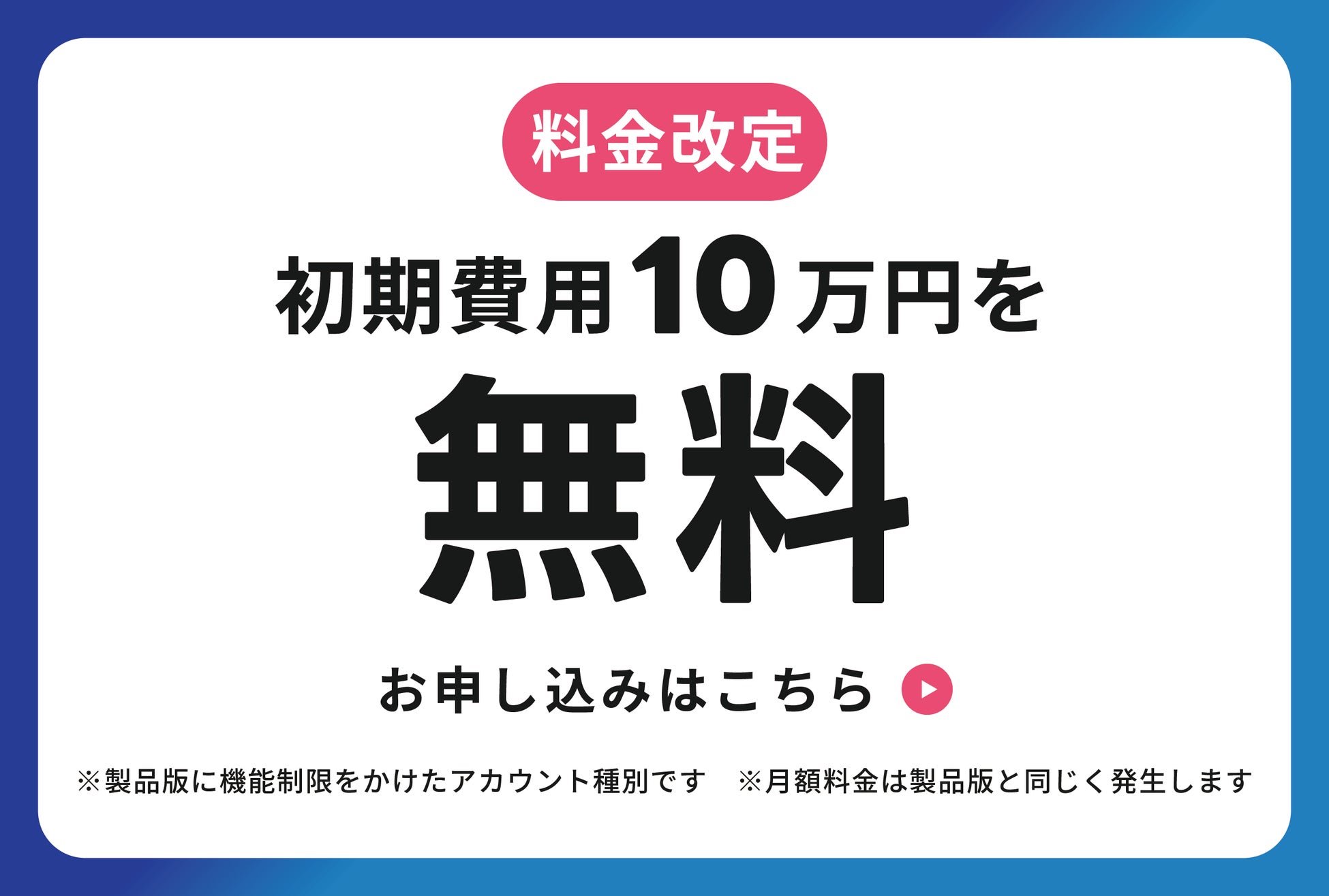 料金改定を行い、初期費用10万円を無料にする「プレビュー環境」をご用意しました。一部機能の制限はあるものの、期間の縛りや条件なく、月額980円~だけでご利用可能です。
