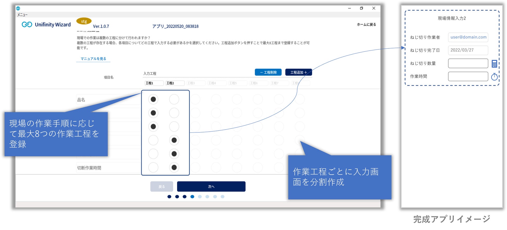 「Unifinity Wizard」を活用することで、業務アプリのプロトタイプが無料で簡単につくれるので、現場のニーズを素早く具体化させ、効果的なプロジェクトを抽出、アプリの導入を確実に成功させることができます。