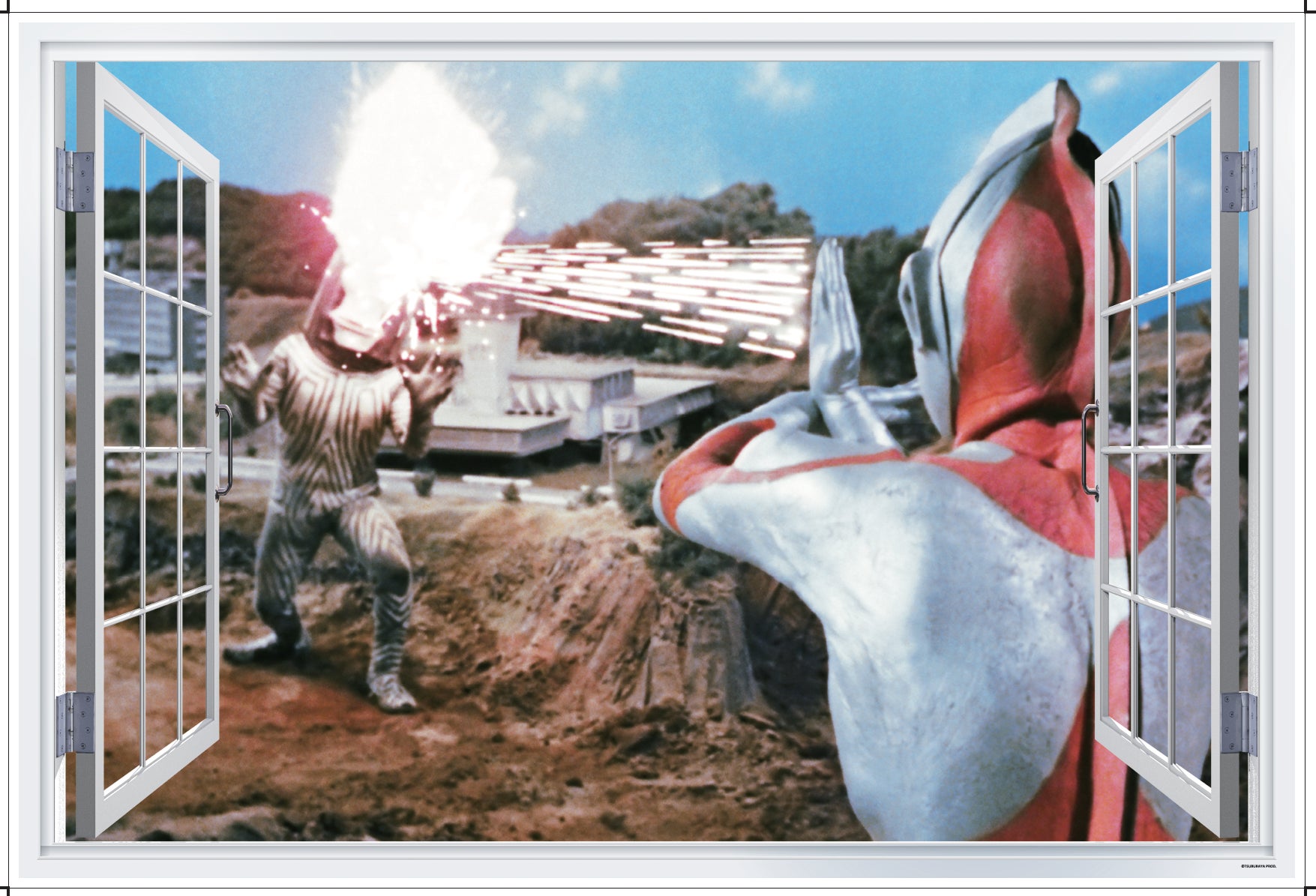 「ウルトラマン」「ウルトラセブン」のバトルシーンがウォールステッカーで登場。窓枠デザインになっており、壁に貼るとお部屋に居ながら目の前でウルトラマン達が戦っているような雰囲気を楽しめます♪