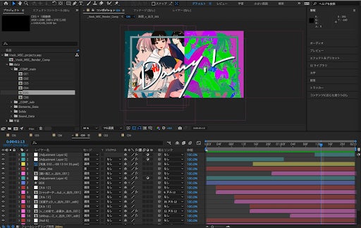ダニエル氏がこの講座のために描き下ろしたイラストを含む練習素材を配布します。また、島 猛氏が手がけた作例動画については、モーショングラフィックスの編集履歴が入ったAdobe After Effectsのプロジェクトファイルデータ(Aepファイル)も提供するため、ハイレベルなプロの技術を追体験しながら学習することが可能です。