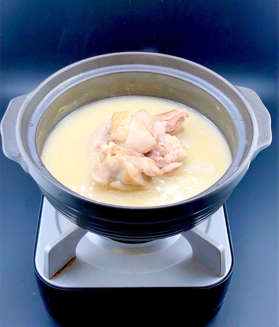 自慢の超濃厚鶏スープを味わっていただくため具材はあえて肉とネギのみ。なんと1人前からご注文いただけます。〆の雑炊も絶品!